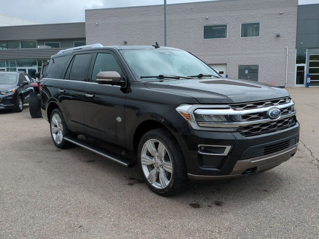 2022 Ford Expedition King Ranch Agate Black Metallic 4WD 22 Speakers, 3rd row seats: split-bench, Active Park Assist 2.0 Removal, Adaptive suspension, Air Conditioning, AM/FM radio: SiriusXM with 360L, Automatic temperature control, Equipment Group 400A Standard Package, Exterior Parking Camera Rear, Front dual zone A/C, Front fog lights, Fully automatic headlights, Heated front seats, Heated rear seats, Heated steering wheel, Heated/Ventilated Del Rio Lthr Fr Captains Chairs, Memory seat, Navigation system: Connected Navigation, Pedal memory, Power driver seat, Power Liftgate, Power moonroof, Power passenger seat, Radio: B&O Unleashed Sound System by Bang & Olufsen, Rear air conditioning, SiriusXM w/360L, Steering wheel mounted audio controls, SYNC 4 w/Enhanced Voice Recognition, Ventilated front seats, Wheels: 22 6-Spoke Polished Aluminum.