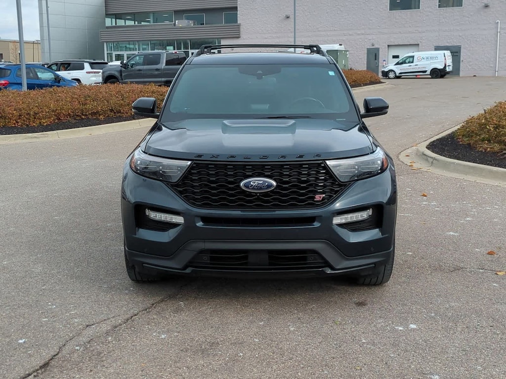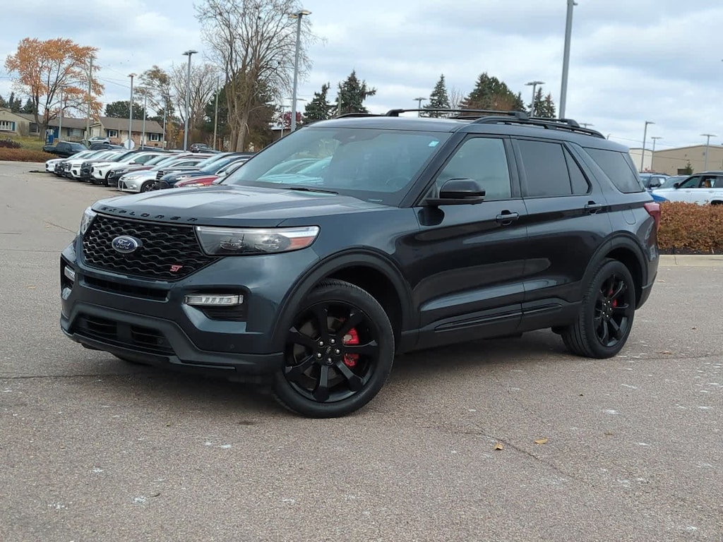 2022 Ford Explorer ST Stone Blue Metallic 4WD Explorer ST, 4D Sport Utility, 3.0L EcoBoost V6, 4WD, Stone Blue Metallic, Ebony Leather, 10.1 LCD Capacitive Portrait Touchscreen, 110V/150W AC Power Outlet, 2 Additional Speakers, 360-Degree Camera w/Split View, Auto-Dimming Rearview Mirror (Interior), Equipment Group 401A, Evasive Steering Assist, Ford Co-Pilot360 Assist+, FordPass Connect, Front Parking Sensors, Front Rain-Sensing Wipers, Hands-Free Foot-Activated Liftgate, Intelligent Adaptive Cruise Control, Memory Drivers Seat, Performance Front & Rear Brakes, Power Tilt/Telescoping Steering Column, Radio: B&O Sound System by Bang & Olufsen, Reverse Brake Assist, Second Row Heated Seats, Sideview Mirrors w/Gloss Black Caps, Speed Sign Recognition, ST High Package, ST Street Pack, SYNC 3 Communications & Entertainment System, Technology Package, Third Row PowerFold (Folds Flat), Universal Garage Door Opener (UGDO), Voice-Activated Touchscreen Navigation System, Wheels: 21 Aluminum, Wireless Charging Pad.