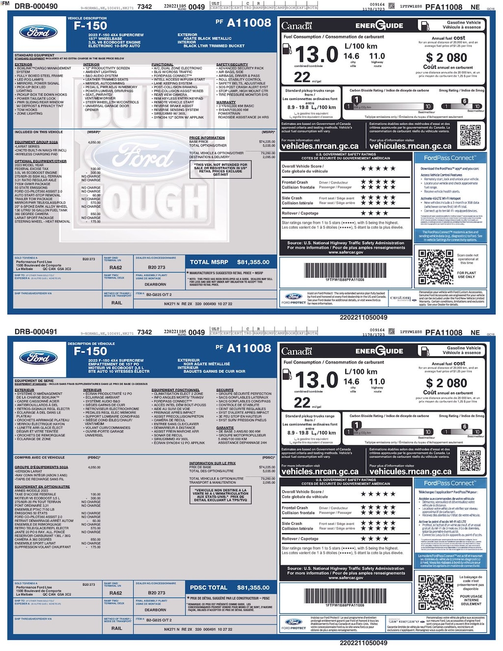 Recent Arrival! Clean CARFAX. 2023 Ford F-150 Lariat Is nicely equipped with Equipment Group 502A High (2nd Row Heated Seats, LED Projector w/Dynamic Bending Headlamps, Power Tilt/Telescoping Steering Column w/Memory, Rain-Sensing Wipers, Wheels: 20" Chrome-Like PVD, and Wireless Charging Pad), Ford Co-Pilot360 Assist 2.0, Lariat Sport Appearance Package (Accent-Color Angular Step Bars, Body-Color Front & Rear Bumpers, Box Side Decals, Chrome Single-Tip Exhaust, and Dark 2-Bar & 1 Minor Bar Style Grille), 4WD, ABS brakes, Alloy wheels, Compass, Electronic Stability Control, Front dual zone A/C, Heated door mirrors, Heated front seats, Illuminated entry, Low tire pressure warning, Remote keyless entry, Traction control, 4-Wheel Disc Brakes, 8 Speakers, Adjustable pedals, Air Conditioning, AM/FM radio: SiriusXM with 360L, Auto High-beam Headlights, Auto-dimming door mirrors, Auto-dimming Rear-View mirror, Automatic temperature control, Brake assist, Bumpers: chrome, Chrome wheels, Class IV Trailer Hitch Receiver, Delay-off headlights, Driver door bin, Driver vanity mirror, Dual front impact airbags, Dual front side impact airbags, Emergency communication system: SYNC 4 911 Assist, Exterior Parking Camera Rear, Front anti-roll bar, Front Bucket Seats, Front Center Armrest, Front fog lights, Front reading lights, Front wheel independent suspension, Fully automatic headlights, Garage door transmitter, Heated steering wheel, Memory seat, Occupant sensing airbag, Outside temperature display, Overhead airbag, Overhead console, Panic alarm, Passenger door bin, Passenger vanity mirror, Pedal memory, Power door mirrors, Power driver seat, Power passenger seat, Power steering, Power windows, Radio data system, Radio: B&O Sound System by Bang & Olufsen, Rear reading lights, Rear seat center armrest, Rear step bumper, Rear window defroster, Security system, Speed control, Speed-sensing steering, Split folding rear seat, Steering wheel mounted audio controls, SYNC 4 w/Enhanced Voice Recognition, Tachometer, Telescoping steering wheel, Tilt steering wheel, Trip computer, Turn signal indicator mirrors, Variably intermittent wipers, Ventilated front seats, Voltmeter, and Wheels: 18" Chrome-Like PVD.