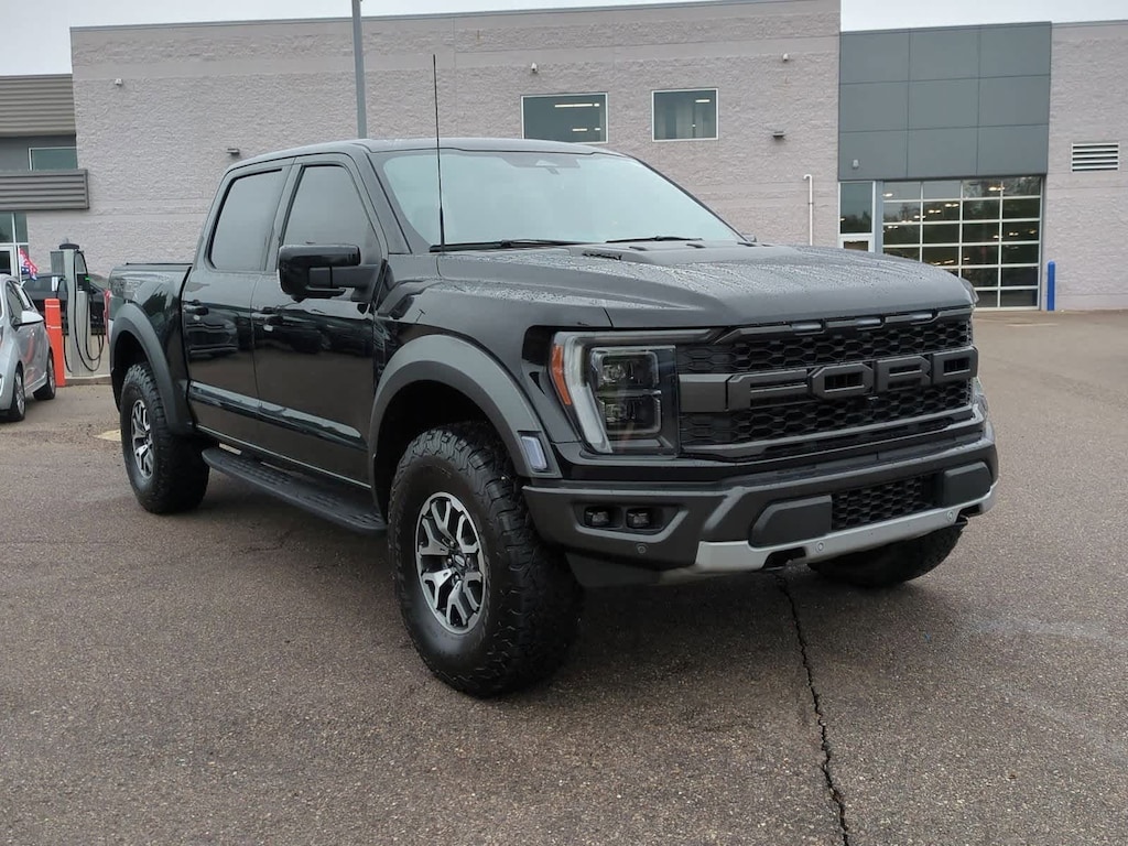 2023 Ford F-150 Raptor Agate Black Metallic 4WD 17 Cast Aluminum Wheels, 18 Speakers, AM/FM radio: SiriusXM with 360L, Auto High-beam Headlights, Automatic temperature control, Blue Interior Package, Electronic Locking w/4.10 Axle Ratio, Equipment Group 801A Standard, Exterior Parking Camera Rear, Front dual zone A/C, Front fog lights, Fully automatic headlights, GVWR: 7,300 lbs Payload Package, Heated front seats, Heated rear seats, Heated steering wheel, Lane Departure Warning System, Leather Trim Seats w/Heated 2nd Row, Memory seat, Moonroof & Tailgate, Navigation system: Connected Navigation, Power driver seat, Power Tailgate, Radio: B&O Unleashed Sound System by Bang & Olufsen, Recaro Unique Blue Accent 40/Console/40 Front Seats, Steering wheel mounted audio controls, SYNC 4 w/Enhanced Voice Recognition, Twin Panel Moonroof, Ventilated front seats.