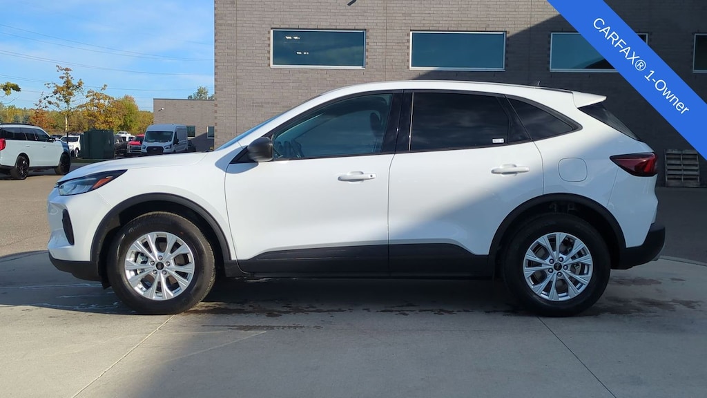 Recent Arrival! Clean CARFAX. 2025 Ford Escape Active Is nicely equipped with Cold Weather Package (Heated Front Row Seats, Heated Sideview Mirrors, Heated Steering Wheel, and Remote Starter System), Equipment Group 200A, AWD, 3.81 Axle Ratio, 4-Wheel Disc Brakes, 6 Speakers, ABS brakes, Air Conditioning, Alloy wheels, AM/FM radio: SiriusXM, AM/FM Stereo, Auto High-beam Headlights, Automatic temperature control, Brake assist, Bumpers: body-color, Compass, Delay-off headlights, Driver door bin, Driver vanity mirror, Dual front impact airbags, Dual front side impact airbags, Electronic Stability Control, Emergency communication system: SYNC 4 911 Assist, FordPass Connect, Four wheel independent suspension, Front anti-roll bar, Front Bucket Seats, Front Center Armrest, Front dual zone A/C, Front reading lights, Fully automatic headlights, Illuminated entry, Knee airbag, Low tire pressure warning, Occupant sensing airbag, Outside temperature display, Overhead airbag, Overhead console, Panic alarm, Passenger door bin, Passenger vanity mirror, Power door mirrors, Power steering, Power windows, Radio data system, Rear anti-roll bar, Rear reading lights, Rear seat center armrest, Rear window defroster, Rear window wiper, Remote keyless entry, Speed control, Speed-sensing steering, Speed-Sensitive Wipers, Split folding rear seat, Spoiler, Steering wheel mounted audio controls, SYNC 4, Tachometer, Telescoping steering wheel, Tilt steering wheel, Traction control, Trip computer, Unique Cloth Front Bucket Seats, Variably intermittent wipers, and Wheels: 17" Shadow Silver-Painted Aluminum.