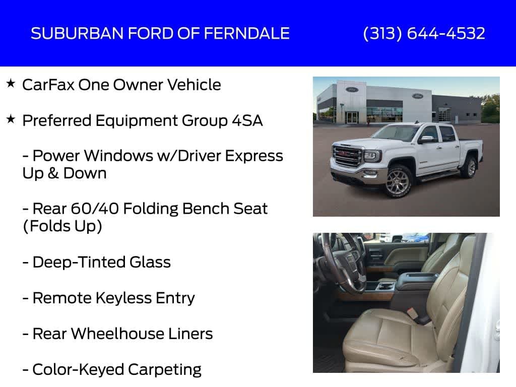 Summit White 2018 GMC Sierra 1500 SLT 4WD 6-Speed Automatic Electronic with Overdrive EcoTec3 5.3L V8 CarFax One Owner Vehicle, 6-Speed Automatic Electronic with Overdrive, 4WD, Cocoa/Dune Leather, 110-Volt AC Power Outlet, 150 Amp Alternator, 1st & 2nd Row Color-Keyed Carpeted Floor Mats, 2-Speed Active Electronic AutoTrac Transfer Case, 20 x 9 Polished Aluminum Wheels, 4.2 Diagonal Color Display Driver Info Center, 6 Rectangular Chromed Tubular Assist Steps, AM/FM Radio: SiriusXM, Auto-Dimming Inside Rear-View Mirror, Automatic Temperature Control, Auxiliary External Transmission Oil Cooler, Bose Speaker System, Chrome Bodyside Moldings, Chrome Door Handles, Chrome Mirror Caps, Color-Keyed Carpeting, Deep-Tinted Glass, Driver & Front Passenger Illuminated Vanity Mirrors, Dual-Zone Automatic Climate Control, Electric Rear-Window Defogger, Exterior Parking Camera Rear, EZ Lift & Lower Tailgate, Front Frame-Mounted Black Recovery Hooks, Fully Automatic Headlights, GMC 4G LTE, Heated Driver & Front Passenger Seats, Heavy-Duty Rear Locking Differential, Hill Descent Control, Leather Wrapped Steering Wheel w/Cruise Controls, LED Cargo Box Lighting, LED Tailamps w/Signature, Manual Tilt/Telescoping Steering Column, Memory Driver Seating, Off-Road Suspension Package, OnStar & GMC Connected Services Capable, Power Adjustable Pedals, Power Driver Seat, Power Folding & Adjustable Heated Outside Mirrors, Power Windows w/Driver Express Up & Down, Preferred Equipment Group 4SA, Rear 60/40 Folding Bench Seat (Folds Up), Rear Wheelhouse Liners, Remote Keyless Entry, Remote Keyless Entry, Remote Vehicle Starter System, Single Slot CD/MP3 Player, SLT Premium Package, Steering Wheel Audio Controls, Theft Deterrent System (Unauthorized Entry), Thin Profile LED Fog Lamps, Trailering Equipment, Universal Home Remote.