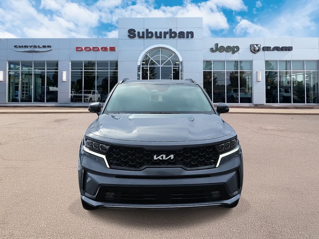 se habla Espanol! Our athletic One Owner 2022 Kia Sorento SX AWD puts premium capability at your command in Everlasting Silver! Motivated by a TurboCharged 2.5 Liter 4 Cylinder generating 281hp paired to an 8 Speed Automatic Dual-clutch transmission for spirited performance. As a result, this All Wheel Drive SUV is a fantastic people-mover with capable strength for towing, plus it returns nearly 27mpg on the highway. Just choose your favorite setting on our Sorentos multimode performance system, then chase your dreams in style with LED lighting, fog lamps, a panoramic sunroof, sporty bumpers, a hands-free tailgate, and alloy wheels.
