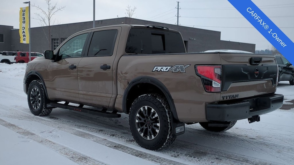 Clean CARFAX. 2021 Nissan Titan PRO-4X Is nicely equipped with Off Road Protection Package (All Season Floor Mats), PRO-4X Convenience Package (4-Way Power Assist Seat, Heated Driver & Passenger Seat, Heated Power Tilt/Telescopic Steering Wheel, Heated Rear Seats, Intelligent Around View Monitor (I-AVM), Leather Seat Trim, Memory Driver Seat w/Auto Entry/Exit Feature, Power Folding Auto Dimming Outside Mirrors, Remote Engine Start on Key Fob, and Side Turn Signal Lamps on Mirror Housing), PRO-4X Moonroof Package (Driver & Passenger Ventilated Front Seats and Dual Panel Panoramic Moonroof w/Tilt & Slide), PRO-4X Utility Package (110V Outlet in Bed, Electronic Locking Tailgate, Fender Premium Audio System w/12 Speakers, Front & Rear Parking Sensors, LED Tailgate Area Illumination, LED Under Rail Bed Lighting, Power Sliding Rear Window w/Defogger, Proximity Activation, Rear Utility Bed Step, Trailer Brake Controller, Trailer Light Check Function On Key Fob, and Utilitrack System w/4 Tie-Down Cleats), 4WD, Navigation system: NissanConnect Navigation, 3.692 Axle Ratio, 4-Wheel Disc Brakes, 6 Speakers, ABS brakes, Air Conditioning, Alloy wheels, AM/FM radio: SiriusXM, Auto High-beam Headlights, Auto-dimming Rear-View mirror, Auto-leveling suspension, Automatic temperature control, Bed Assist Grip, Blind Spot Warning, Brake assist, Cloth Seat Trim w/Vinyl Bolsters, Compass, Delay-off headlights, Driver door bin, Driver vanity mirror, Dual front impact airbags, Dual front side impact airbags, Electronic Stability Control, Emergency communication system: NissanConnect Services, Front anti-roll bar, Front Bucket Seats, Front Captain's Seats, Front Center Armrest, Front dual zone A/C, Front fog lights, Front reading lights, Front wheel independent suspension, Fully automatic headlights, Garage door transmitter: HomeLink, Heated door mirrors, Illuminated entry, Knee airbag, Leather steering wheel, Low tire pressure warning, NissanConnect featuring Apple CarPlay and Android Auto, Occupant sensing airbag, Outside temperature display, Overhead airbag, Overhead console, Panic alarm, Passenger door bin, Passenger vanity mirror, Power door mirrors, Power driver seat, Power steering, Power windows, PRO-4X Badged Floor Mats (DISC), PRO-4X Illuminated Kick Plate, Pro4X Mud Flaps, Pro4X Rugged Step Boards, Radio data system, Radio: NissanConnect w/Navigation, Rain sensing wipers, Rear anti-roll bar, Rear Bumper Step w/Electronic Tailgate Lock, Rear Parking Sensors, Rear seat center armrest, Rear Seat Entertainment (H93) (DISC), Rear step bumper, Rear window defroster, Remote keyless entry, Security system, Speed control, Speed-sensing steering, Speed-Sensitive Wipers, Split folding rear seat, Steering wheel mounted audio controls, Tachometer, Telescoping steering wheel, Tilt steering wheel, Traction control, Trip computer, Variably intermittent wipers, Voltmeter, and Wheels: 18" x 8" Painted Dark Finish Alloy.
