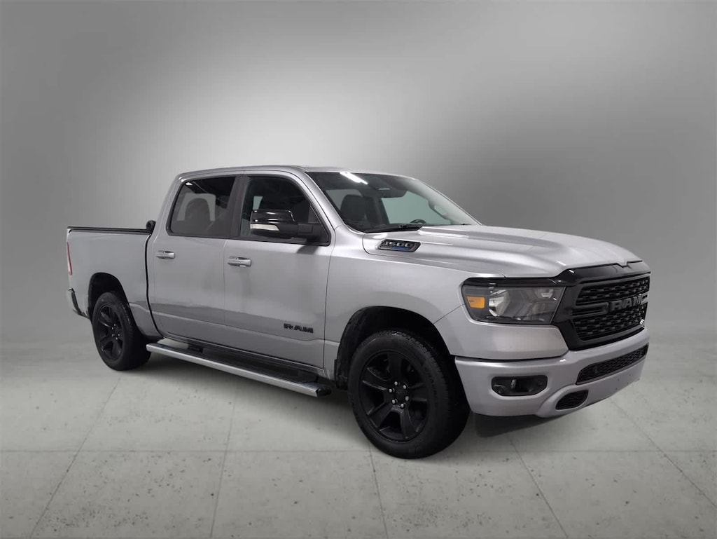 Built for modern life with everyday capability, our Accident Free, One Owner, Certified Pre-Owned 2022 RAM 1500 Big Horn Crew Cab 4X4 Night Edition delivers standout appeal in Billet Silver Metallic. Motivated by a 5.7 Liter HEMI V8 supplying 395hp connected to an 8 Speed Automatic transmission, so you can tow or haul without breaking a sweat. This trail-friendly Four Wheel Drive truck also rewards you with responsive handling, and it achieves nearly 22mpg on the highway. Take command of your challenges in style with our RAMs quad halogen headlights, fog lamps, a chrome grille, 20-inch black wheels, a Class III hitch receiver, and painted bumpers.